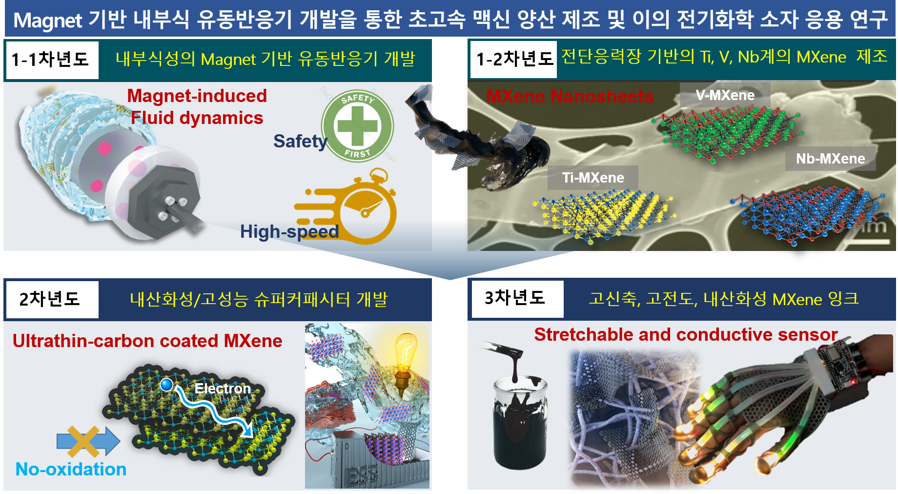 - 연구과제명맥신 양산생산을 위한 내부식성을 갖는 자기력 유도 전단응력장 반응기 개발과 전기화학 소자 응용연구